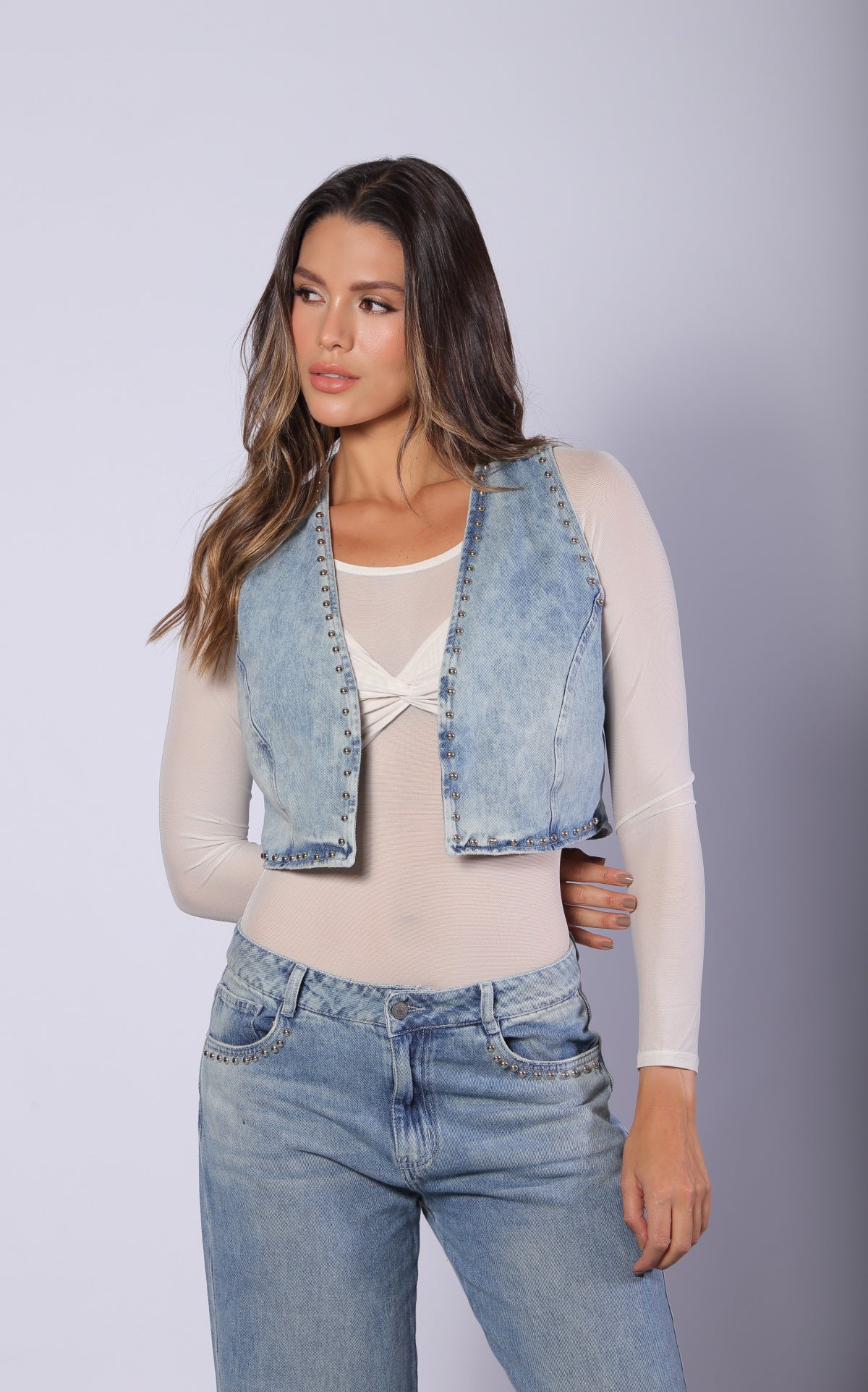 Chaleco Denim Con Apliques