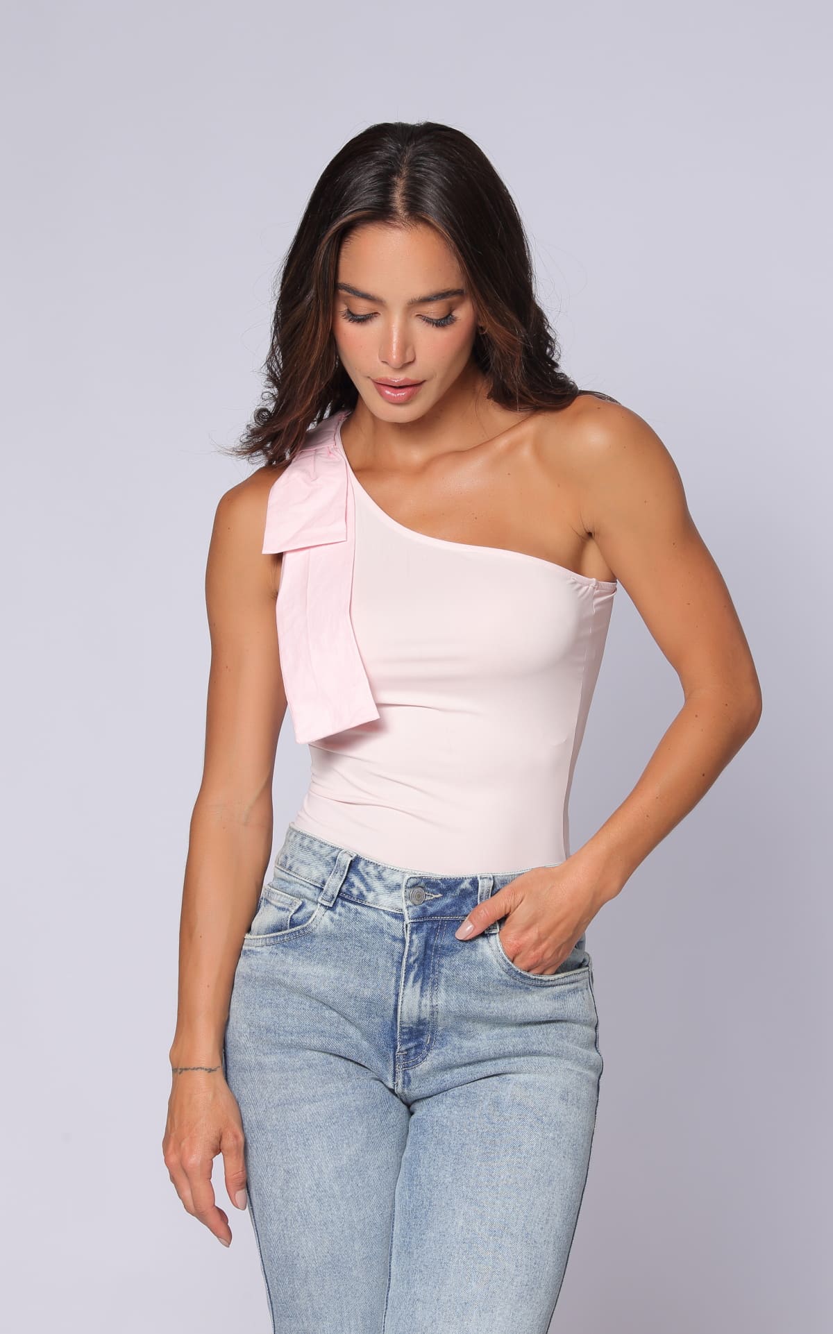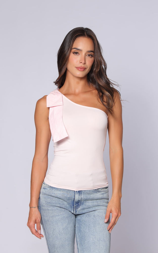 Blusa Rosada Asimétrica Con Moño