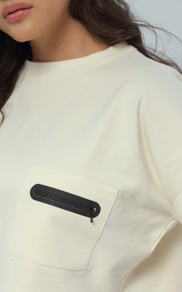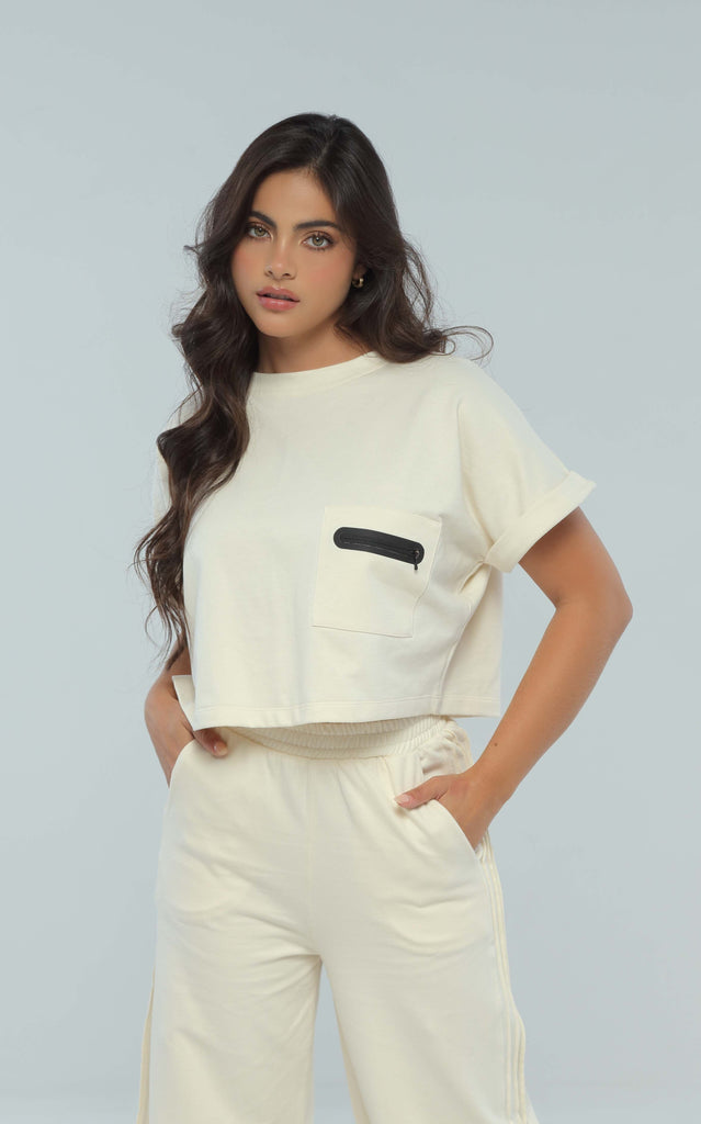 Camiseta Marfil Detalle Bolsillo