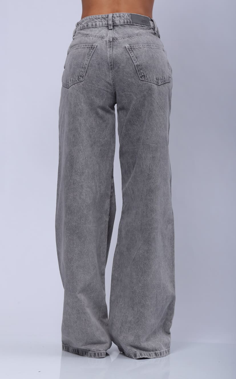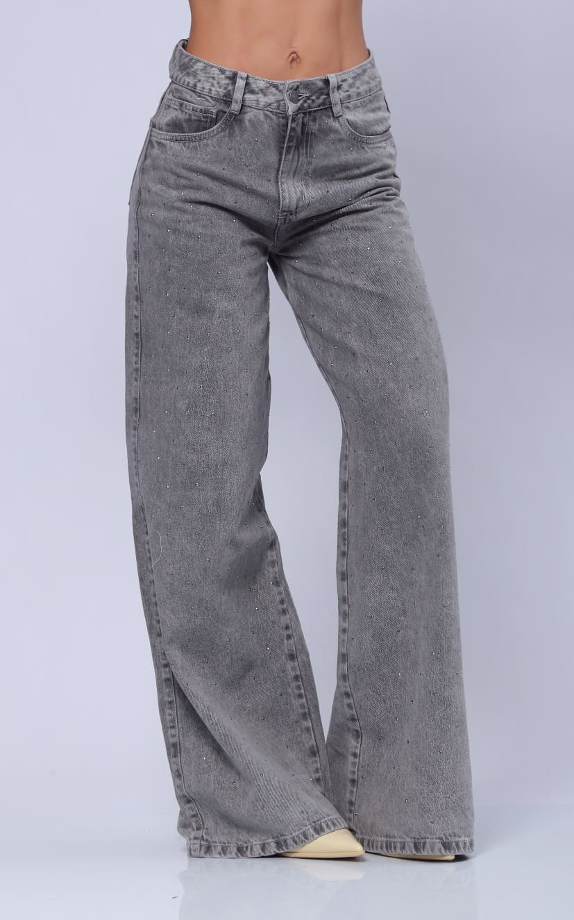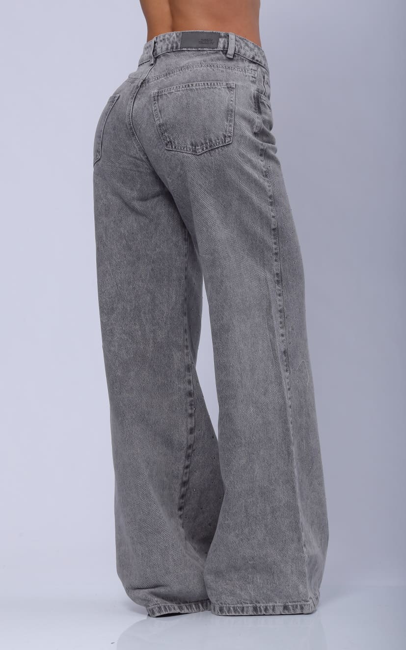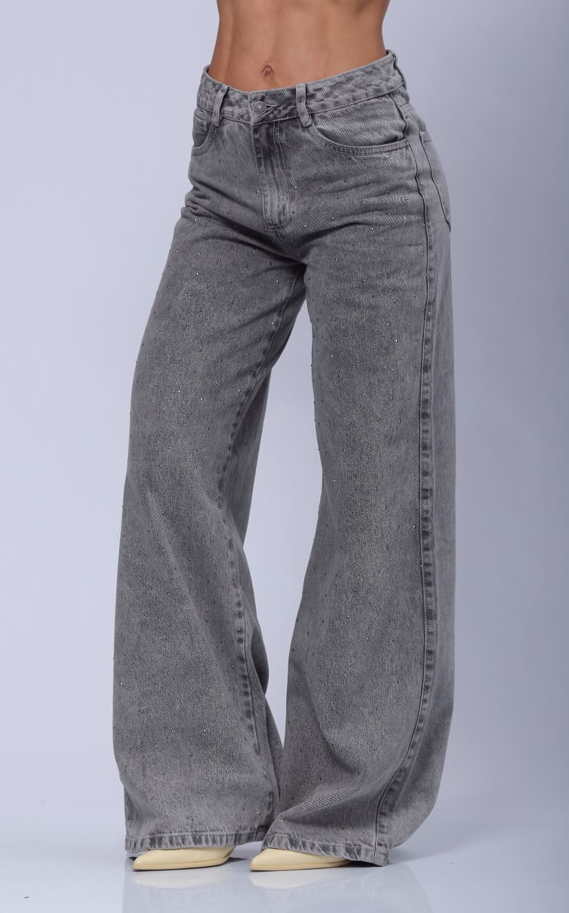 Jean Gris Wide Leg Apliques