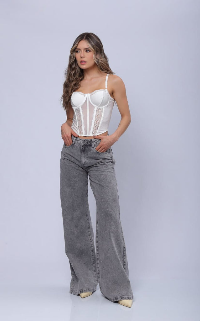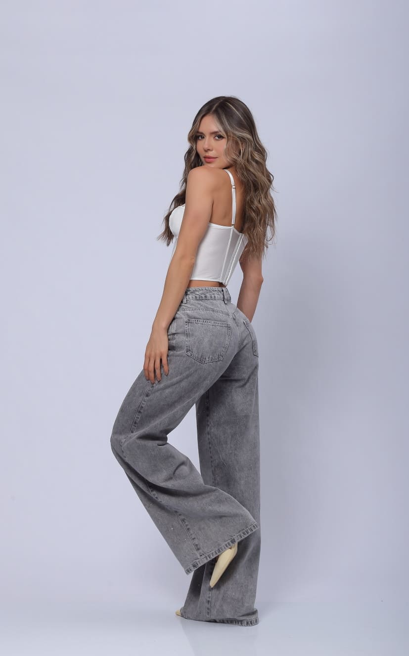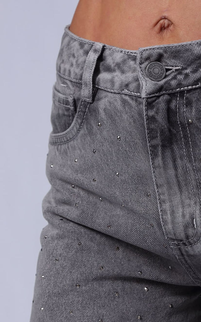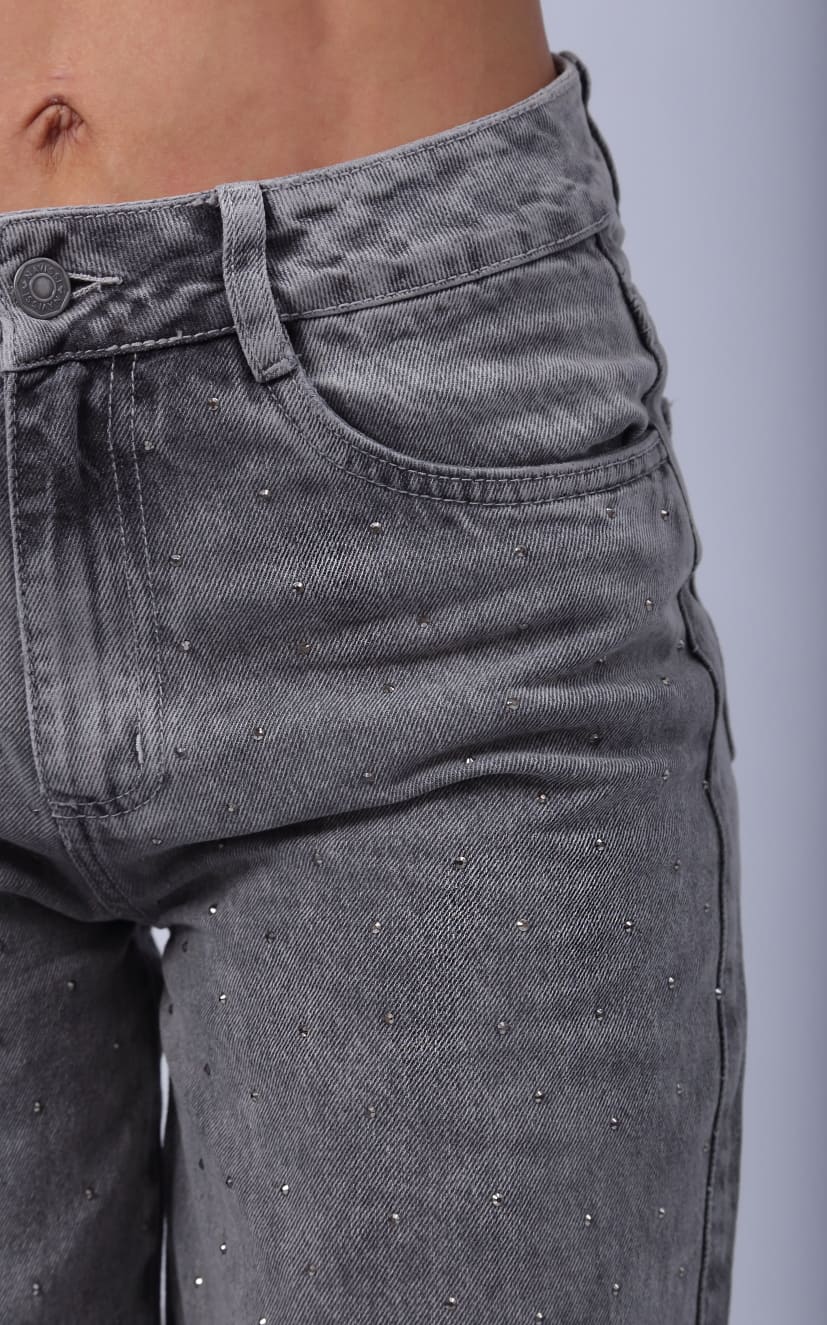 Jean Gris Wide Leg Apliques